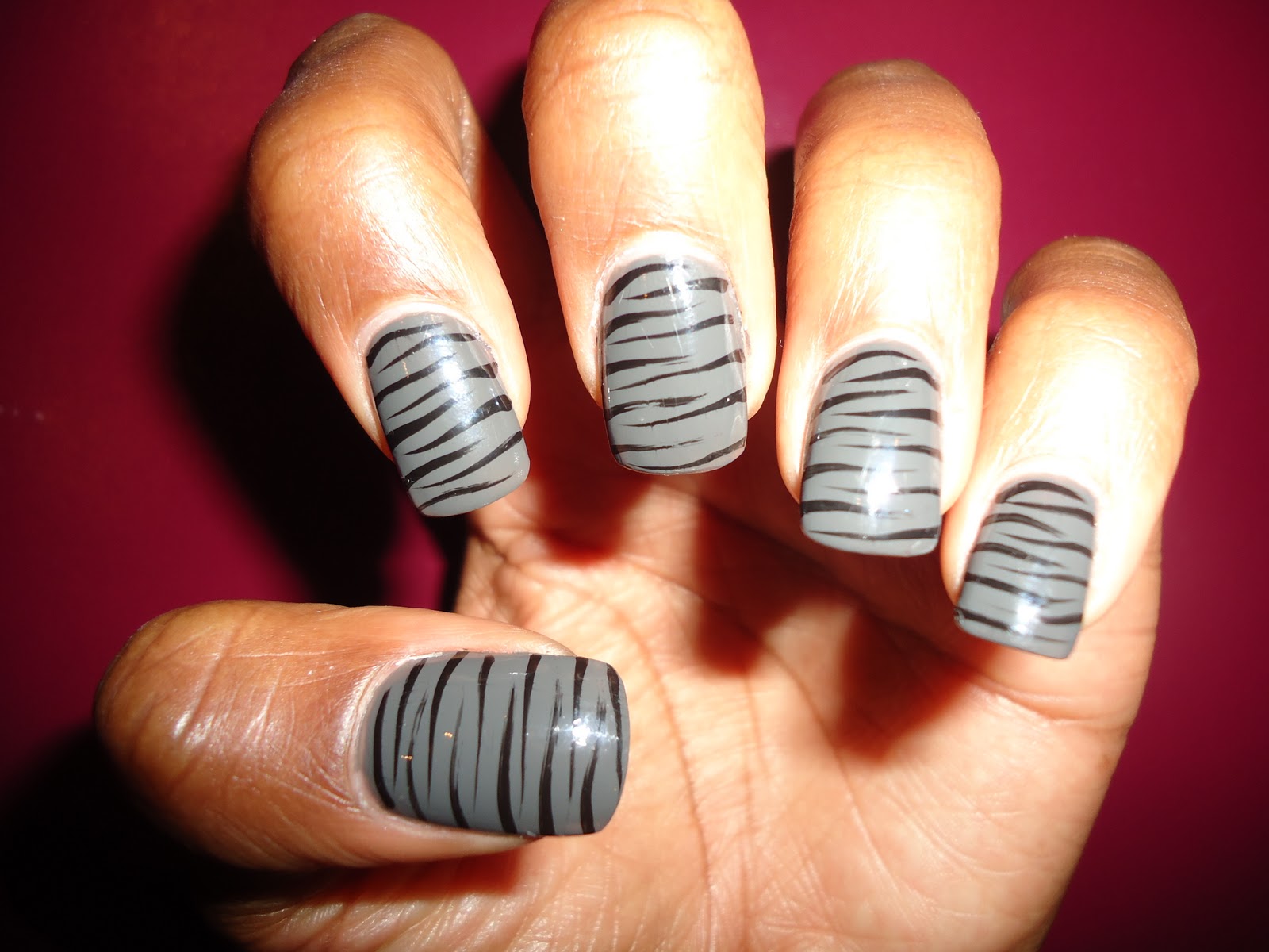 Just wanted to share my latest nail look with you! I was in a frisky mood so I decided to try out one of my recent purchases! It's one of the NEW FALL COLORS from Essie. I then told the nail tech at the last minute to do a zebra print on my nails for fun! (Ya'll know I'm random!) ;)